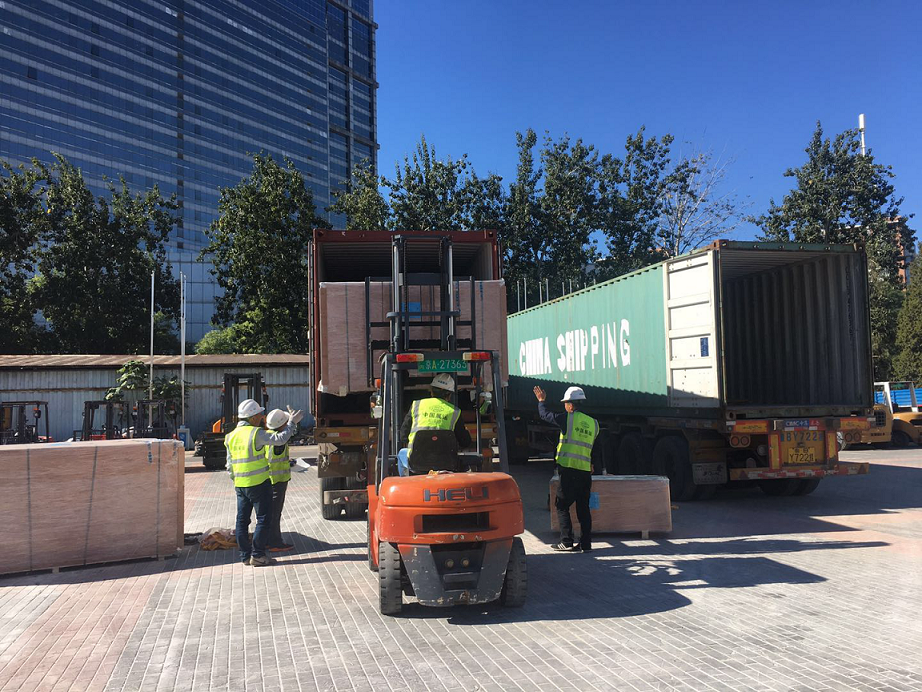 天津到巴拿马海运航线不仅时间长,都需要韩国的釜山、光阳或青岛转船,而且船期很不稳定。常发生拖班现象,增加了展品运输时效的不确定性。经过我们对多家船公司的比对和筛选,最终选择了青岛至巴拿马Manzanillo港有直航船,虽然增加了北京到青岛的陆运时间,但免去了转船拖班的风险。受青岛船期的限制,海运展品集货和发货期间正值中秋和国庆佳节,项目组成员主动放弃假期休息,坚守岗位进行展品接货、制单、理货和发货工作。